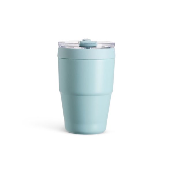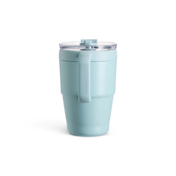 Caneca térmica em inox com pintura eletrostática e capacidade de até 600ml. Apresenta estrutura de parede dupla, base antiderrapante e tampa plástica com vedação a vácuo, protetor emborrachado para o bocal com acesso para canudo. Acompanha canudo de inox com ponta removível em plástico.