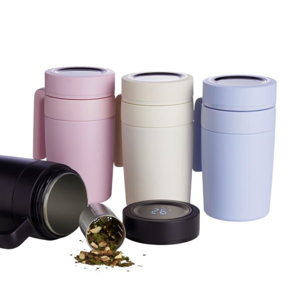 Caneca Térmica inox 500ml com infusor, e display LED com termômetro digital na tampa para indicar a temperatura do líquido.