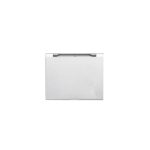 Espelho duplo compacto com moldura em plástico, detalhe ondulado na área da abertura e tampa de formato curvo. Possui dois espelhos: o superior sem aumento e o inferior com aumento.