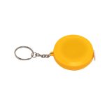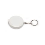 Fita métrica de 1,50 metro em plástico redondo, frente lisa e verso com botão (trava). Acompanha chaveiro.