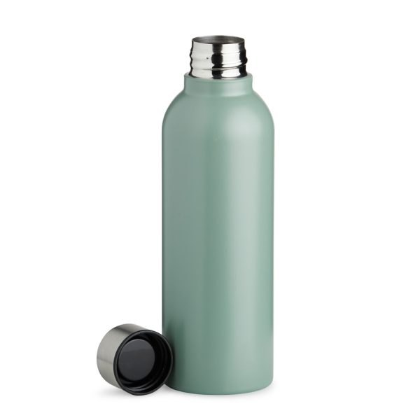 Garrafa 800ml em inox com tampa rosqueável e acabamento fosco.