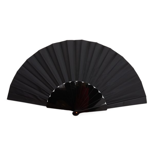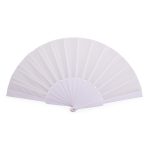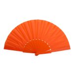 Leque com estrutura plástica compacta e tecido leve.